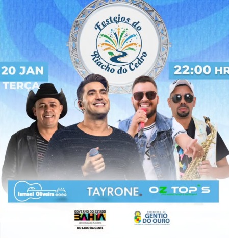 Os Festejos Tradicionais do Riacho do Cedro vão contar com grade de peso, garantindo uma noite especial para toda a comunidade e visitantes, o evento promete parar Gentio do Ouro!