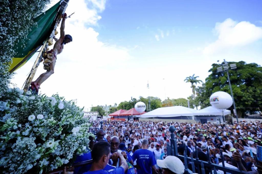 O cortejo percorre quase oito quilômetros e transforma as ruas em um grande templo a céu aberto. De acordo com organizadores, fiéis fazem pedidos, agradecimentos e promessas, misturando religiosidade católica e candomblé.