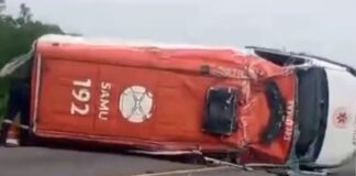 Ambulância capota enquanto transportava gestante em Juazeiro