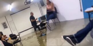 Após forte chuva, sala de aula fica alagada na Bahia