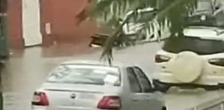 Ruas ficam alagadas após chuva intensa em cidade do interior da...