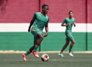 Jhon Árias em treino no Fluminense - Foto: LUCAS MERÇON / FLUMINENSE F.C.
