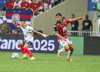 Matheus Bahia foi visto no Beira-Rio durante Inter x Palmeiras e está próximo de deixar o Bahia rumo ao Colorado. Veja detalhes da negociação. - Foto: Felipe Oliveira/EC Bahia